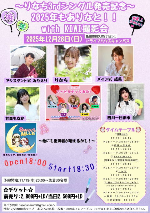 ・このライブはチケットの発券がありません。・撮影・録画・録音は禁止とさせていただきます。