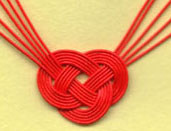 あわじ結びは日本式「ハートマーク」です。欧州で心そのものや心と心の結びつきを意味する「ハート」はキリスト教の聖職者の象徴で、アーサー王物語などでおなじみの「聖杯」に由来するのだそうです。