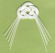 「むすび」に心と心の結びつき「えにし」の意をこめるのは、ある意味日本人特有の感性ですが、最も愛用される「あわじむすび」は、結びとしての完成度の高さと、造形としての美しさと可愛らしさを兼ね備えた「究極の結び」といえましょう。水引細工においても、最も最初に教わる結びで、基礎の基礎でありますが、求めても到達できない永遠の高みとも言える結びであります。
