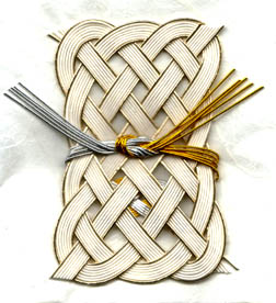 私のように、早くから水引にまつわる作業が高度に分業化された飯田の地で育ったものは、折形の領域に入ってくる水引結びをしたことがほとんどなしだけれども、水引歴は云十年という人が多いと思われます。