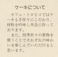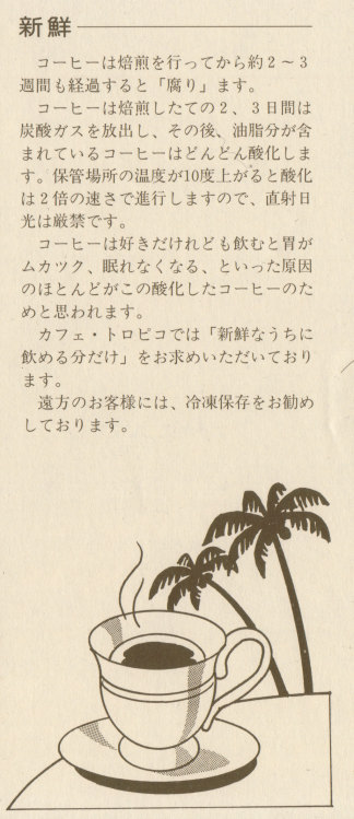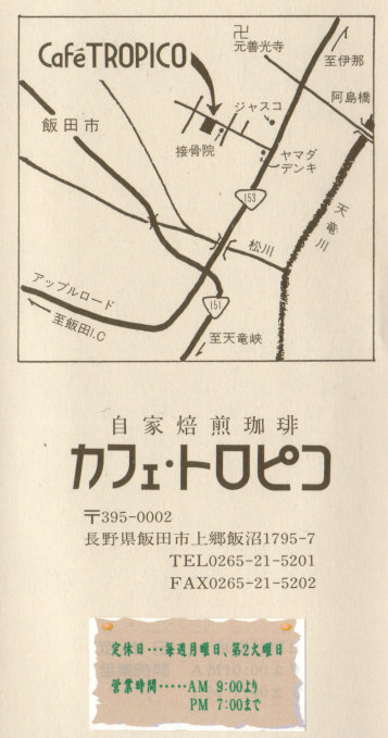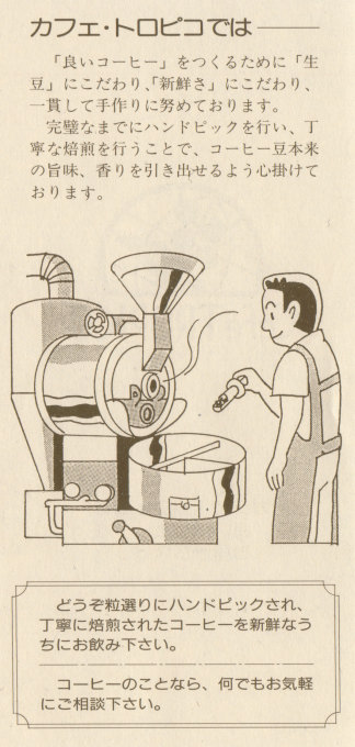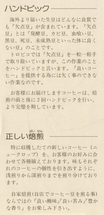 以下はお店様のご好意で転載許可をいただいた「カフェ・トロピコ」様のパンフレットです↓